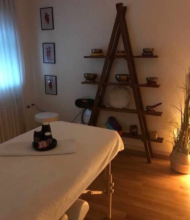 Lors d'une séance de soin avec bols chantants, différents instruments thérapeutiques, dont des bols chantants, sont placés autour et sur le corps habillé. En activant délicatement les bols, les vibrations se libèrent, permettant ainsi d'harmoniser le corps, l'esprit et l'âme, tout en mobilisant les capacités d'auto-guérison.